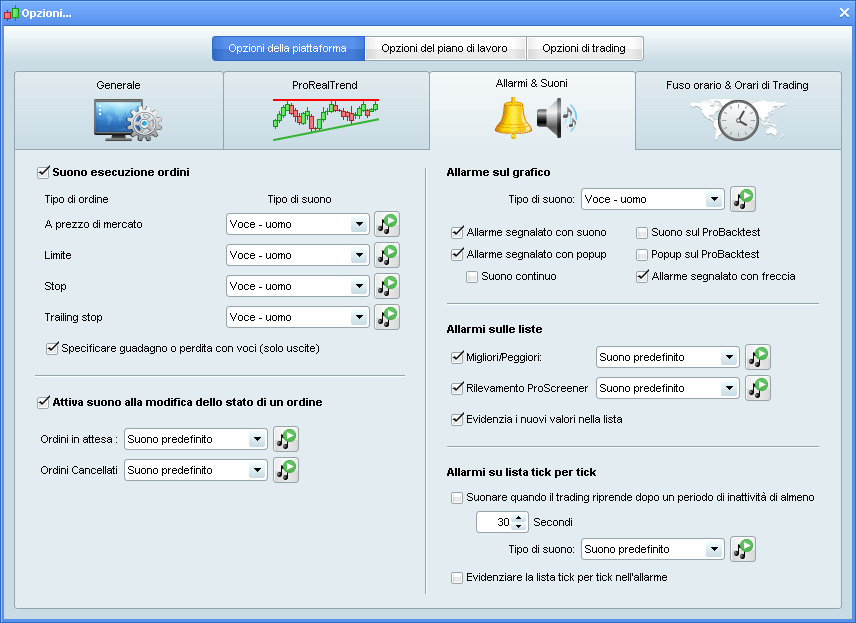 * Una voce umana a disposizione per indicare l’esecuzione degli ordini e lo scattare degli allarmi (es: ” Compra mercato eseguito” ; ” Allarme attivato – vendere”)