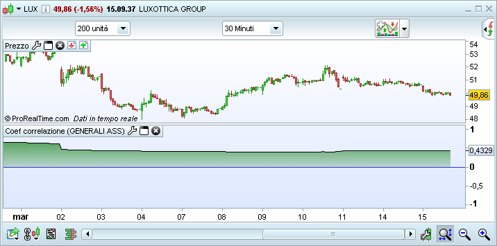 Coefficiente Correlazione – Misura la correlazione in prezzo tra 2 strumenti. Una correlazione vicina al valore 1 mostra una forte correlazione.