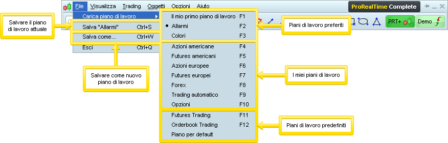 * “Salva come…” per salvare un nuovo piano di lavoro