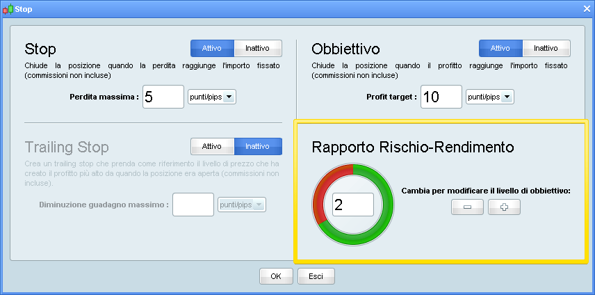 * Può anche configurare il rapporto rischio-rendimento in modalità di creazione semplificata e il software aggiornerà il suo target di conseguenza.