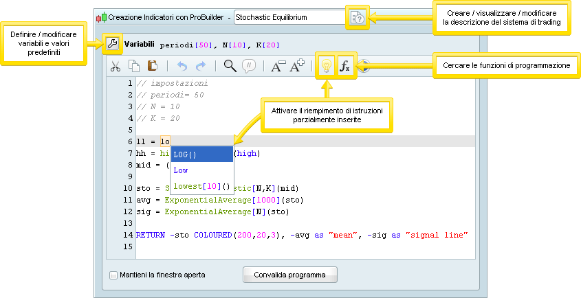 * Può aprire più finestre di programmazione alla volta (per esempio per lavorare su un indicatore e su una strategia allo stesso tempo o su 3 strategie contemporaneamente)!