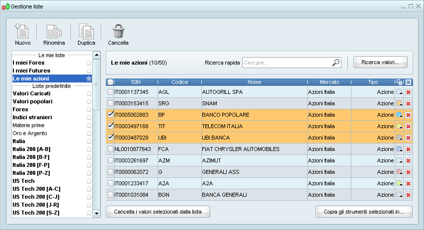* Gli strumenti selezionati sono evidenziati su tutte le liste, inclusi ordini, portafogli, scansioni, Migliori / Peggiori, ecc…
