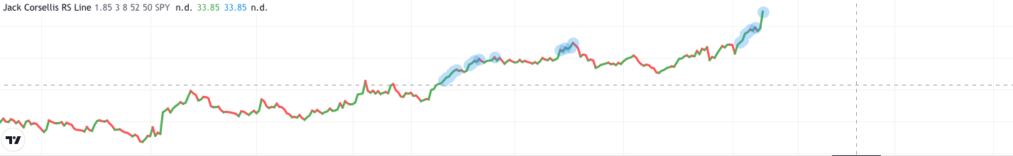 Buonasera sarebbe possibile creare uno screener, ed eventualmente anche un indicatore separato dal grafico tipo RS del sito IBD o simile (allego foto) che segnali un nuovo massimo a 52 settimane??