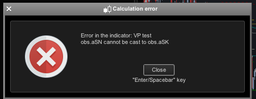 I have started to get this error message (“obs.aSN cannot be cast to obs.aSK”) from time to time. It causes my (own) indicators to disappear and for me to add them again.