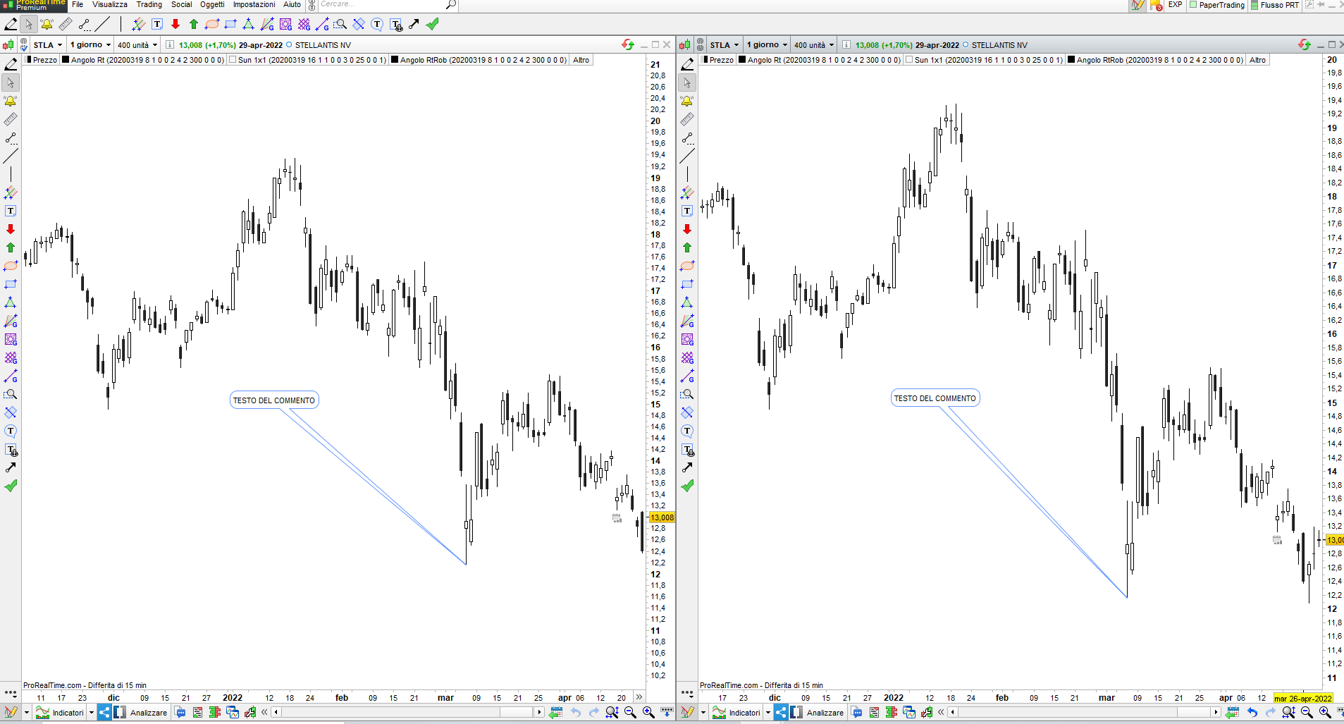 Questo mi rappresenta un problema perchè volendo studiare sotto due punti di vista, i commenti sono funzionali da un punto di vista concettuale solo a quello specifico studio e quindi dovrebbero apparire solo su un grafico, mentre invece appare anche sull’altro.
