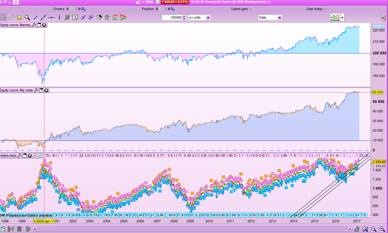 Here is an algo that performs well on one day OMX30. A problem only, the strong uptrend it will be great loss. Is there any good filter that can help me?