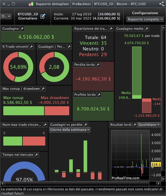 Keep in mind that backtesting is an art in itself. For example, being Long on Bitcoin over that period of time does not lose easily. Hence, try the same over the past one year and it could be more difficult.