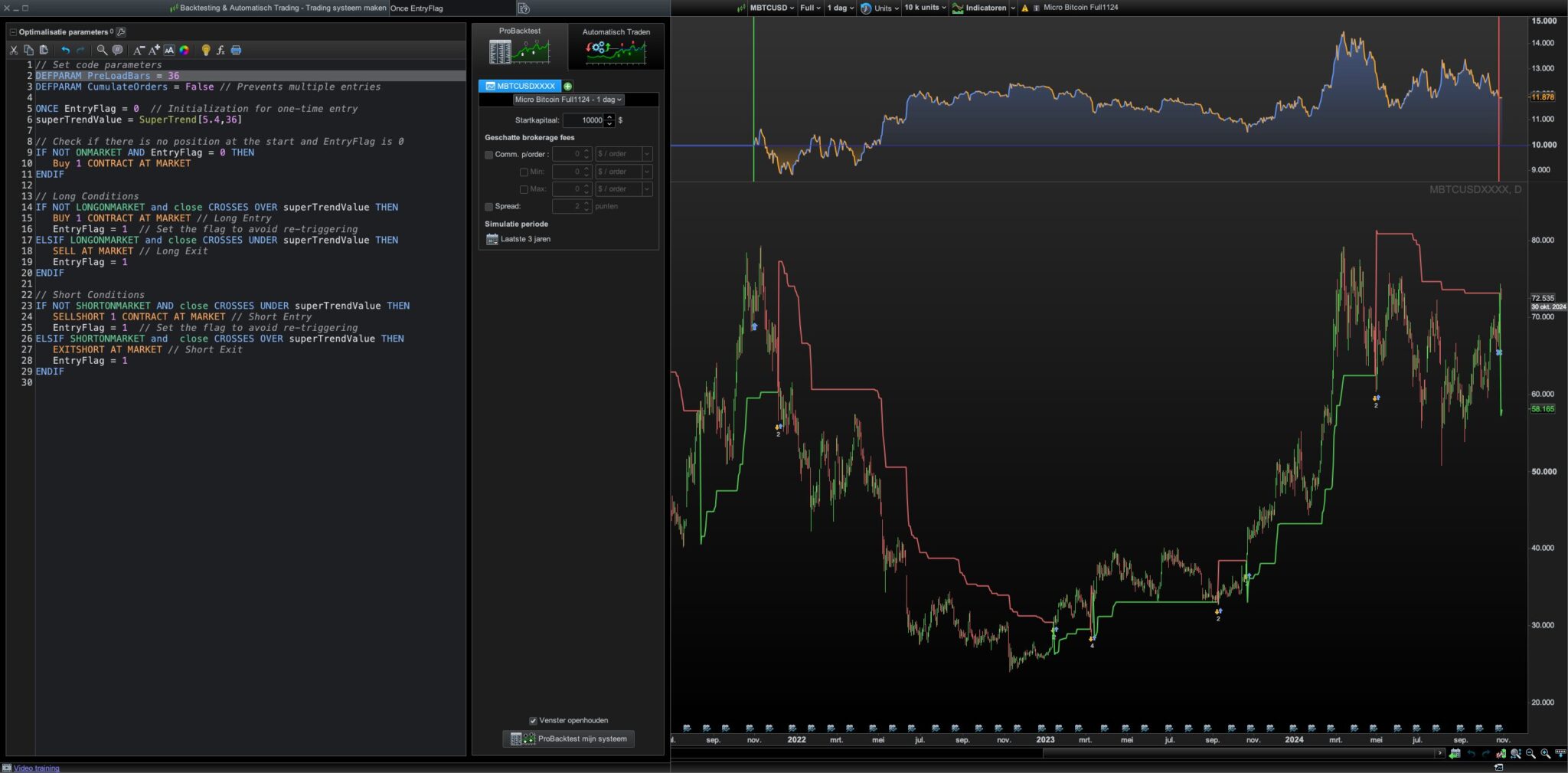 ELSIF LONGONMARKET and close CROSSES UNDER superTrendValue THEN