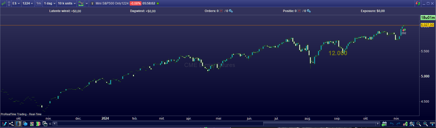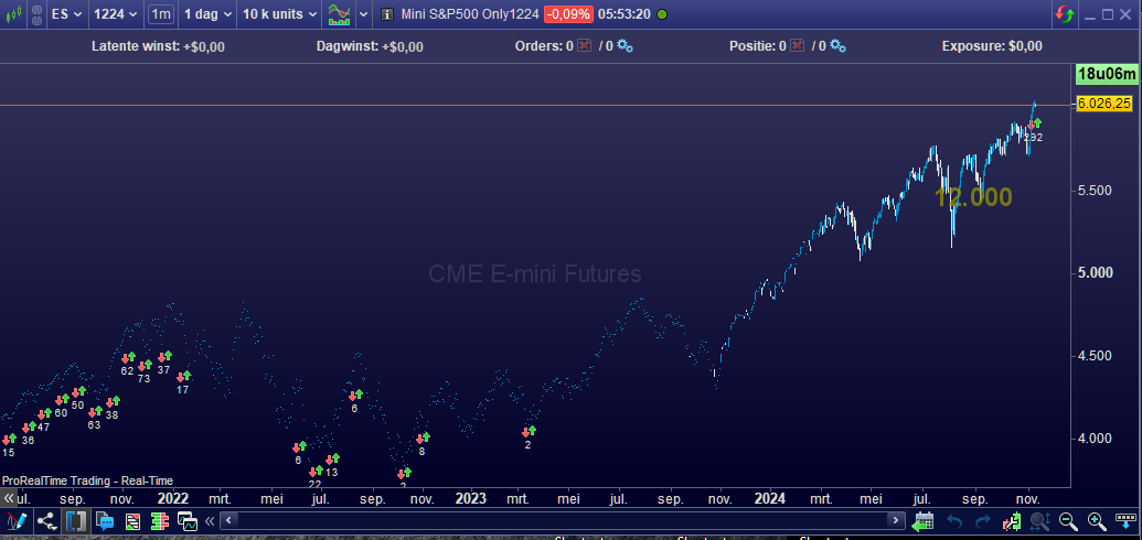 Technically it can be done like in backtest. But functionally it would really be odd – but gets me thinking :-). So we could wonder how much time in the past PRT allows us to look back. We could call it a bug if in Live this is not allowed at all, or say just two months. Again, the Futures have been there and even today a 1224 contract can be viewed quite some time back in the past. Below you can see that. But in any event, since PRT does not offer (virtual) continuous contracts other than in Backtesting (the XXXX versions), the data is quite worthless. You can see that below too. So people trade them (which was back then in the far future ! like today trading 1226), but there will be too few data to work with it reliably. For Indicators that is.