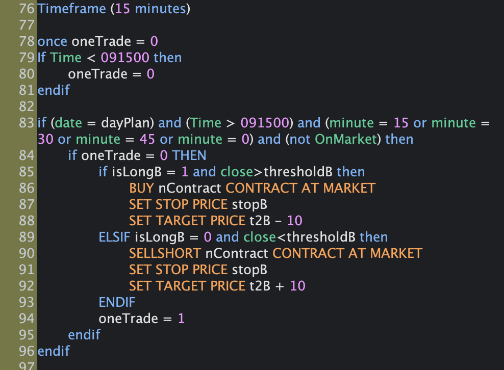 if I remove the IF statement at line 84, pro-backtest will have several trades on a certain day.