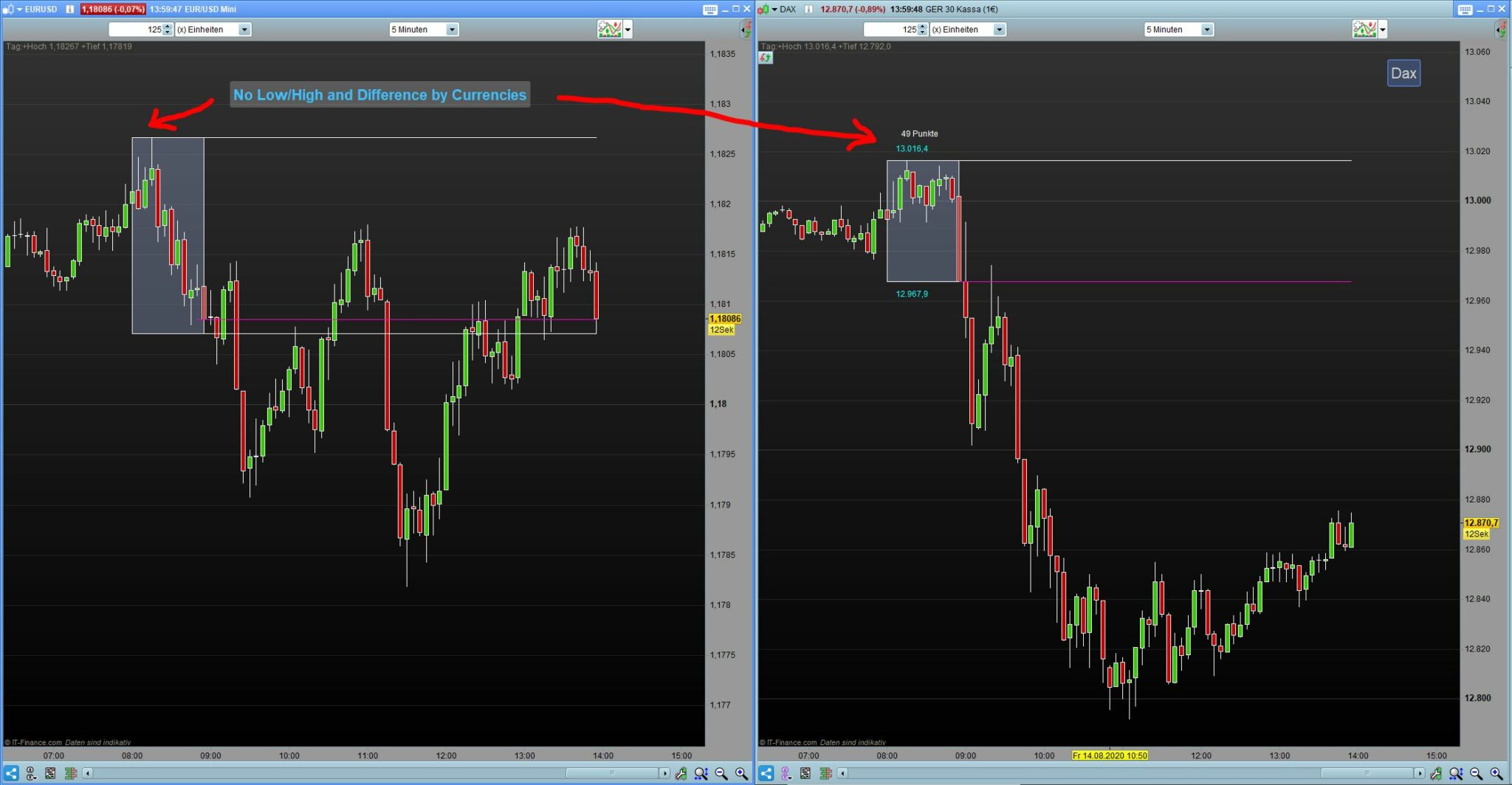Hello, what has to be changed in this code so that it shows low / high and differential values for currencies.