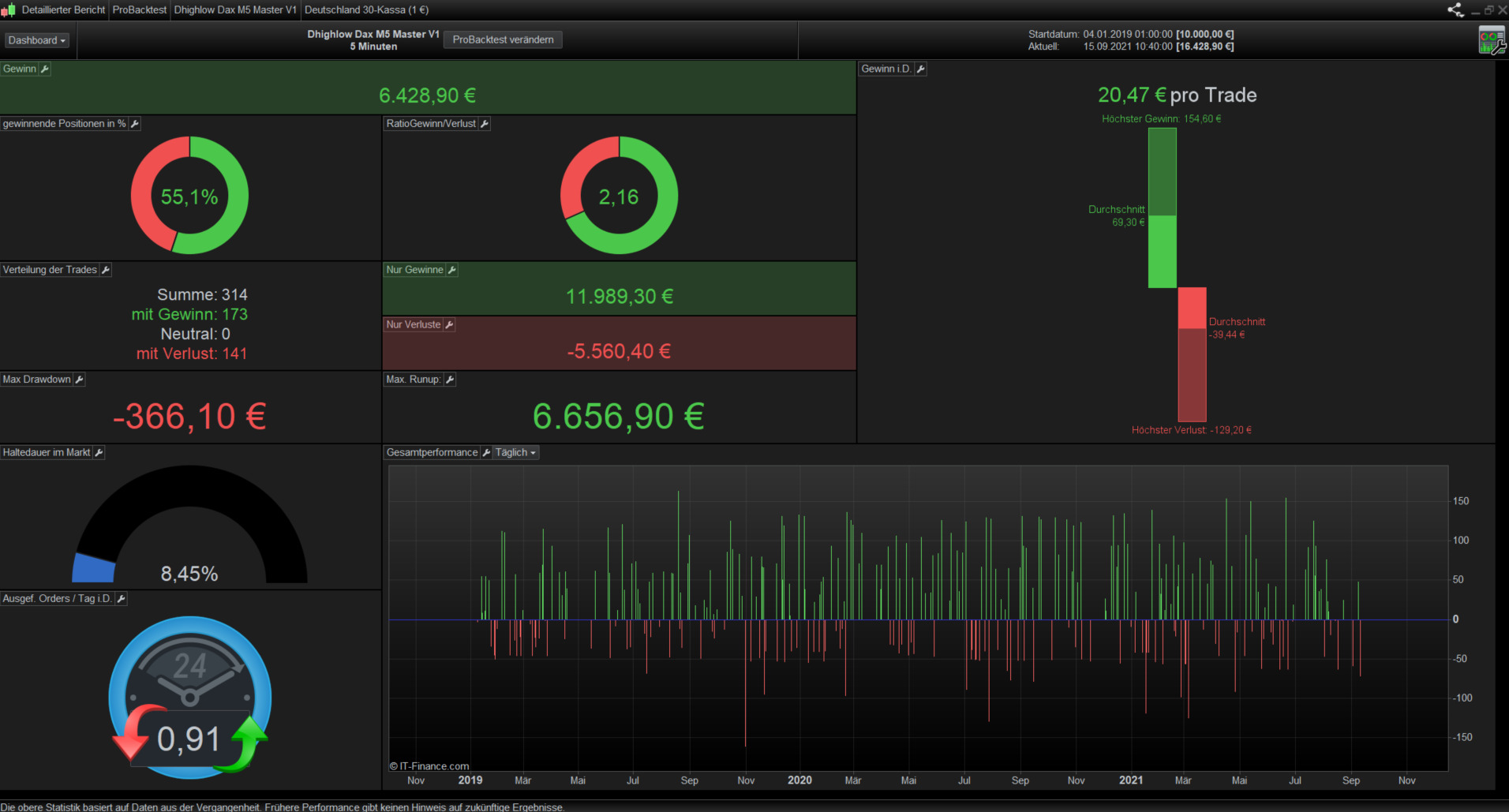 Die Handelsuhrzeit 08-11:00 ist übrigens die Zeit wo der Dax seine Hauptrichtung einzuschlagen scheint. Zumindest sagen das alle meine Backtest verschiedener Systeme.