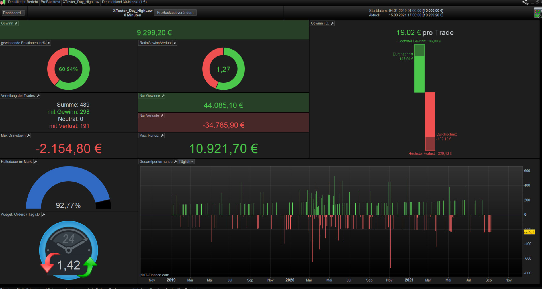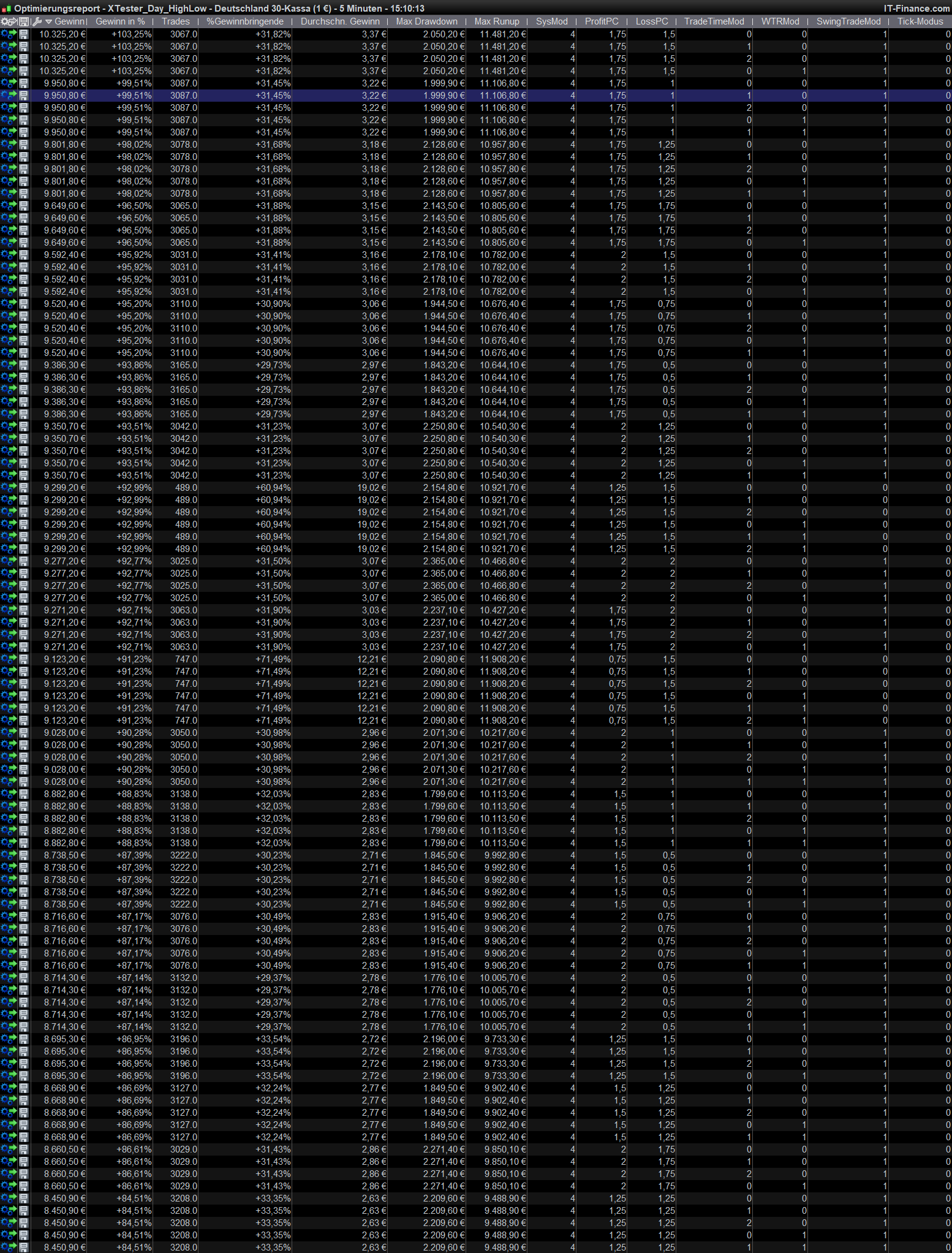 Habe mir erlaubt mal auf die Schnelle mit Daily-Breakouts nach meiner Vorstellung zu testen,.itf-Datei in der Anlage (sicher selbsterklärend) , Screenshots Detailbericht, Optimierung anbei. Ist aber dennoch nicht das Richtige für mich aufgrund zu geringer Handelsfrequenz.