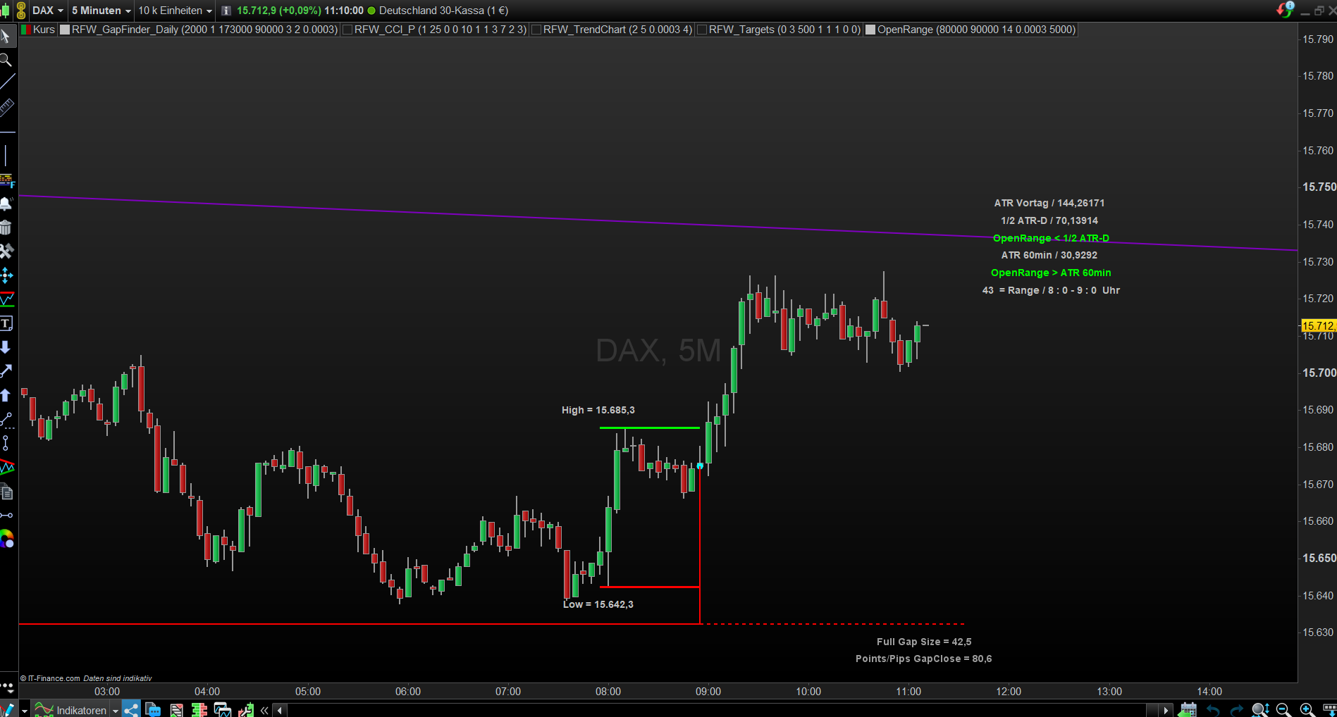 Schort bin ich gleich mit der ersten 9:00 Kerze gegangen, die Regel ist, dass nur der erste Ausbruch gehandelt wird.