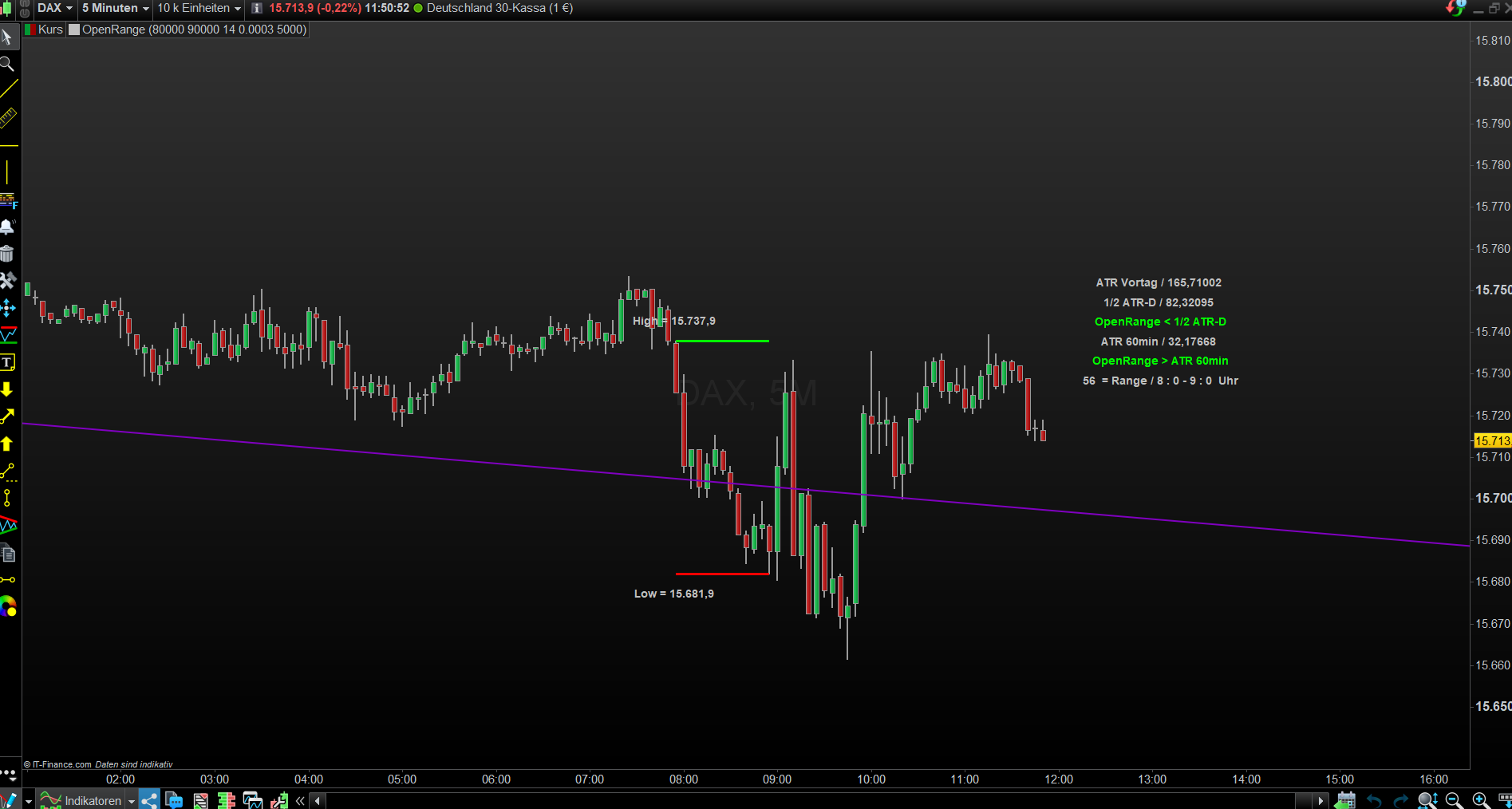 Wann bist Du heute im Dax Short gegangen? Helfe Dir mit einfachen Trendlinien. PRT ist dazu ein perfektes Werkzeug.