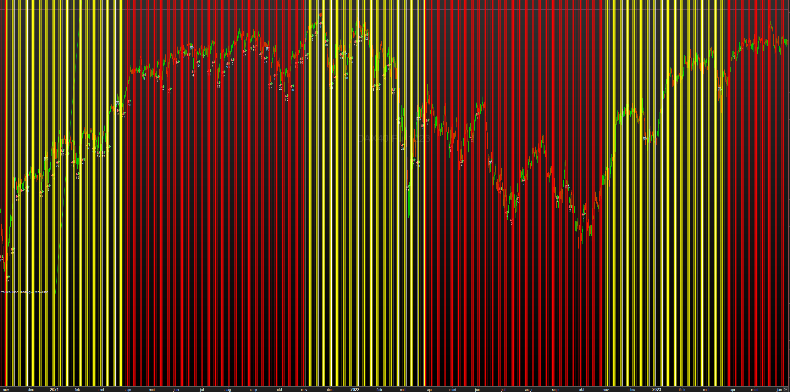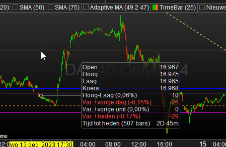 Part of the fun (sort of) is observing what happens with what PRT shows for portfolio profit, knowing about the 17:30 settling time. And you will probably know that PRT (IB) virtually presents that double. Thus like Wednesday huge profit which began 20:00 and which shows in the portfolio for the daily profit at Wednesday night (say 23:00), while the next morning that same profit shows again in the portfolio (because then it starts at the settling of the previous day); it shows double, but is there only once in reality, of course. Just fooling yourself, and don’t look when it goes the other way around.