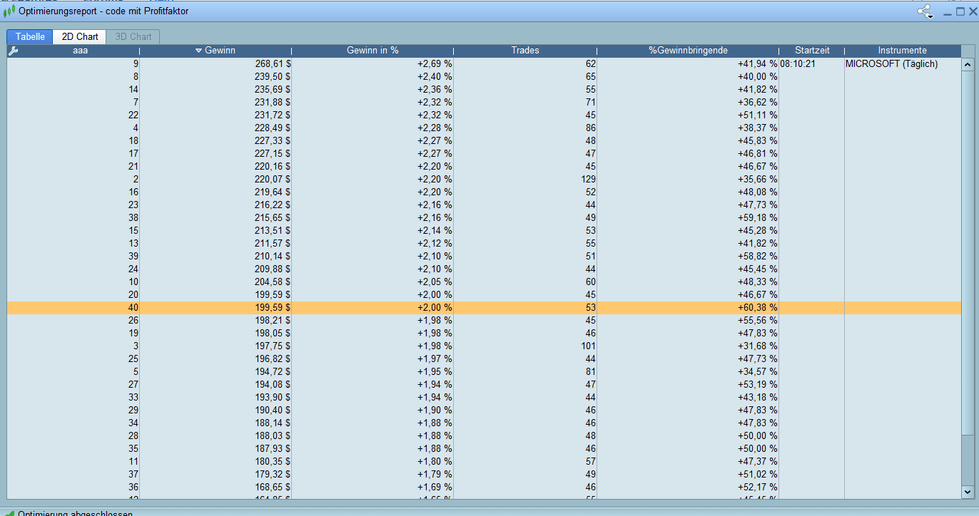 das ist toll, jedoch wollte ich ja, dass der Profitfaktor im Optimierungsbericht (siehe Bild) mit angezeigt wird und man so, das beste system finden kann.
