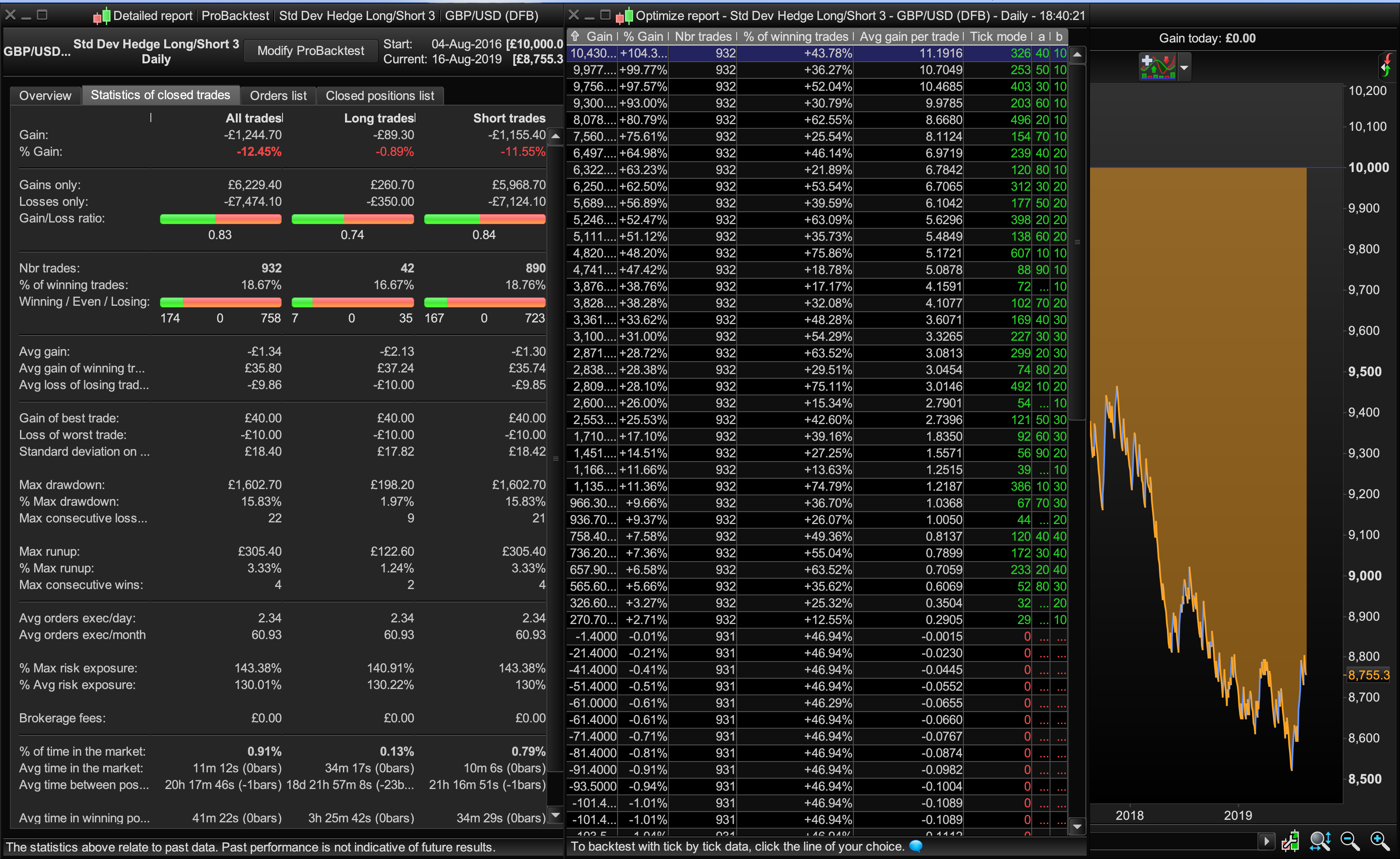 I was looking at a developing a hedging strategy. The idea being that with the correct risk:reward ratio it should be possible to beat the spread/commission. I wanted to also include ATR conditions but when I set up a basic long and short entry model it gives conflicting profit / loss reports. I’ve not encountered an Optimisation Table that produces a profit yet the Detailed Report shows a loss? Pls see screenshot.