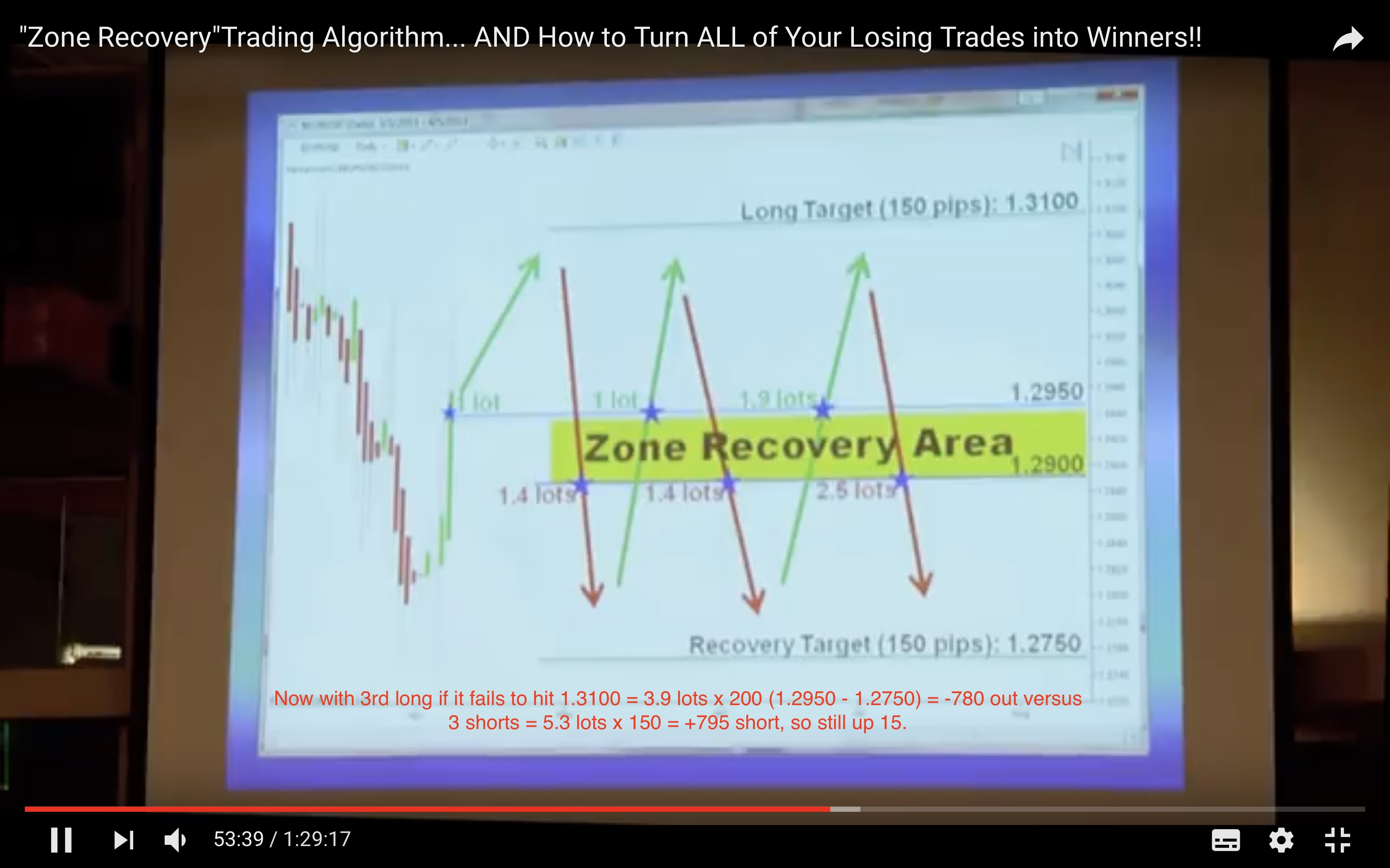 I think to be fair though he just takes the loss if his “unique” Martingale hedging technique fails after 3 longs and 3 short hedges: The image comes from YT at 53 mins and 36 secs.
