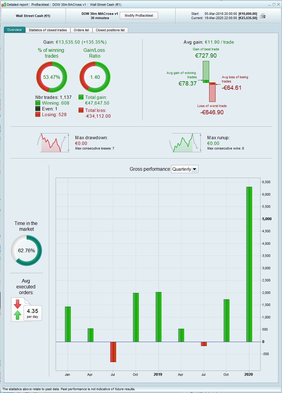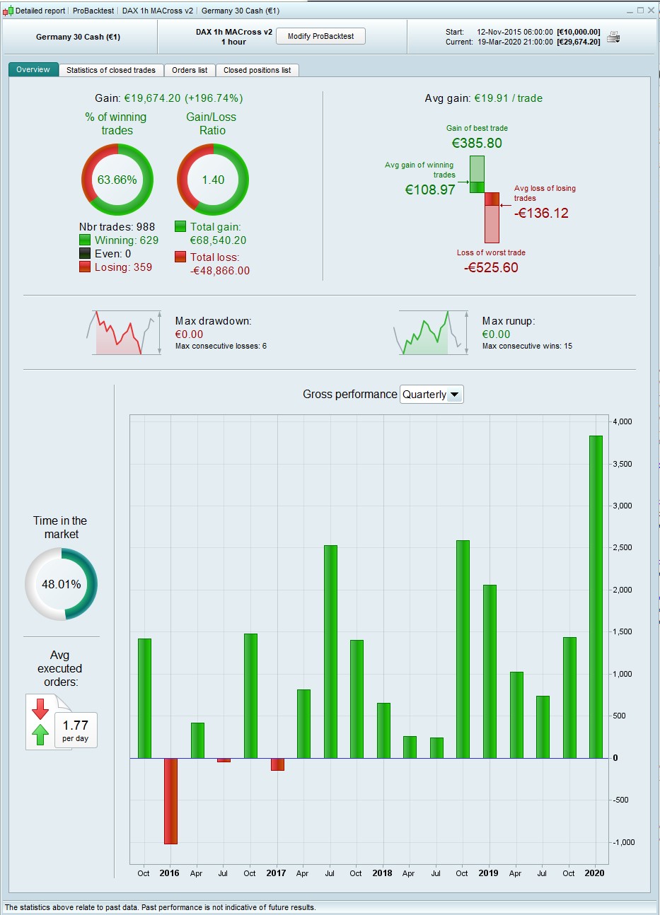 I wanted to open a thread to share some results from Jan’s excellent algo which has recently been added to the library. This is a sort of strategy creation tool that scans 4900 combinations of moving averages and returns the crossing pair that gives the best results for your chosen instrument and TF. Needless to say, the possibilities are endless.