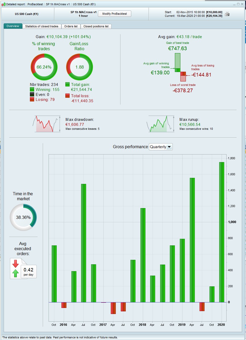 If you’ve got 10 minutes to spare, might be interesting to rerun the MA search, keeping the rest of it as it is (SL, TP etc)