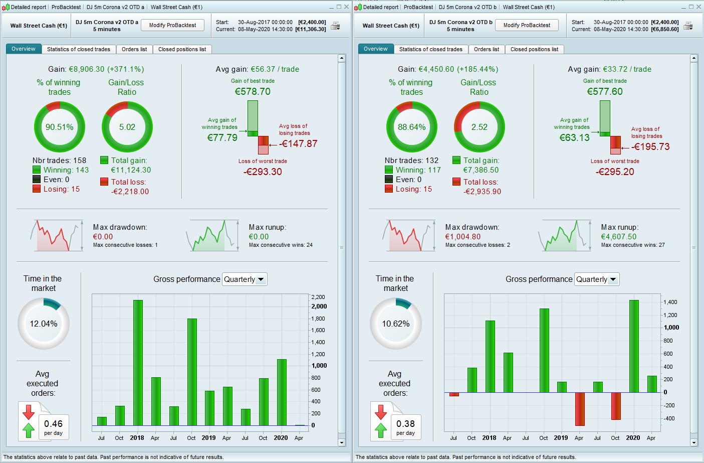 I didn’t even look at VRT, can’t see what I would learn by randomising an algo that makes one trade per day, and is almost never still open the next day. That is the trade you’re going to get, so I’m not too interested in the ones I cannot possibly ever get. WF is very good.