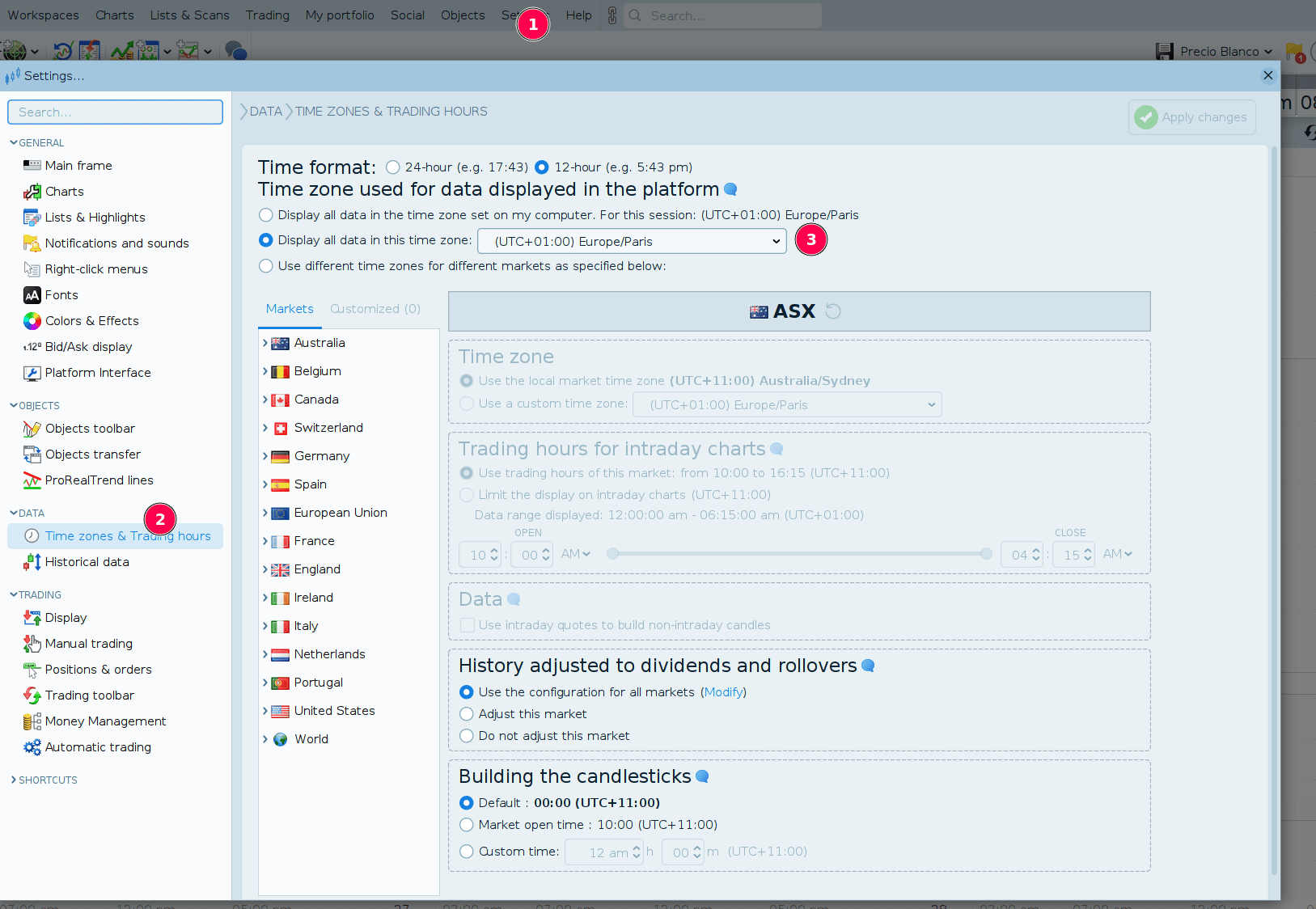 Buongiorno..come posso visualizzare le candele daily ed intraday degli indici Usa nel mio local-time?…ossia che alle 00:01 parta una nuova candela sul daily e sugli altri timeframe….grazie ed una buona giornata