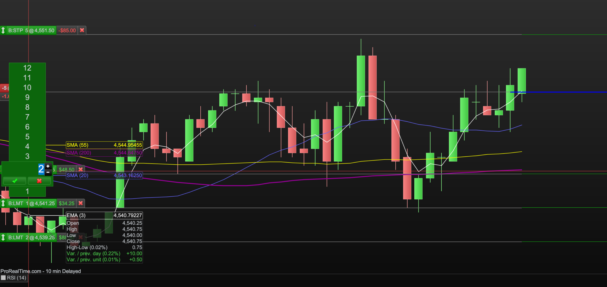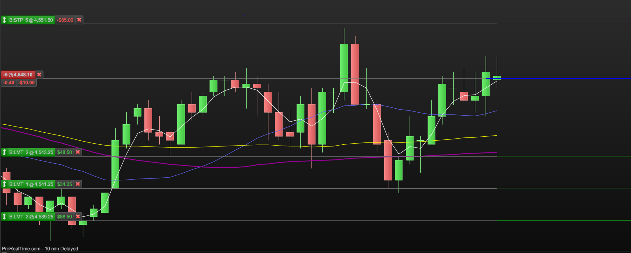- Open Buy trade of 5 Contracts with no Stops or Limits.