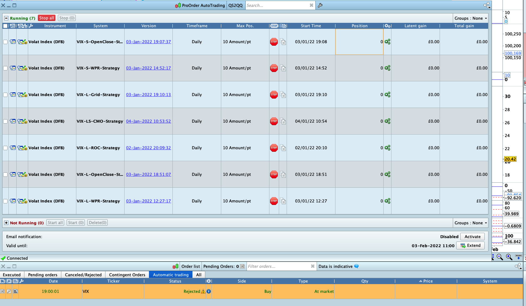 I am using IG and PRT. I have about 7 simple strategies running in Pro Order recently and they have not generated any trade or open any position – there is a rejection “order rejected by the broker” WHY? Am I not deploying the scripts to Pro Order correctly?