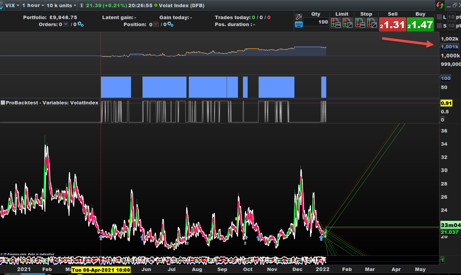 Are you trading Volat Index(DFB)? You are showing 10 Contracts on your backtest.