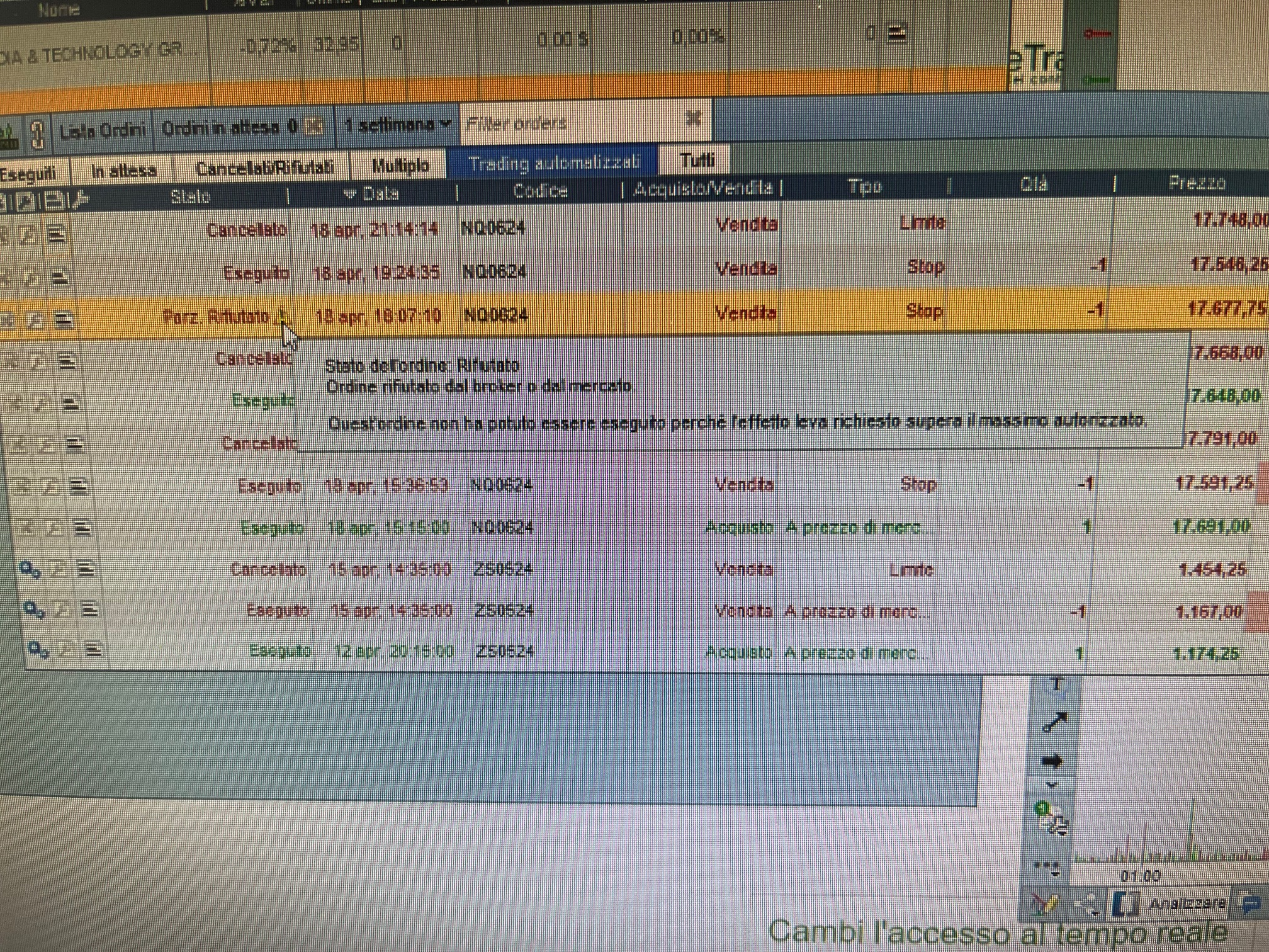 ieri per l’ennesima volta il trailing stop è stato annullato con la motivazione: “quest’ ordine non può essere autorizzato perchè l’effetto leva richiesto supera il massimo autorizza”. Ed è andato in Stop loss. non capisco quale sia il motivo, in Demo ho 34K, non dovrebbe essere un problema di soldi. grazie chi mi può aiutare.