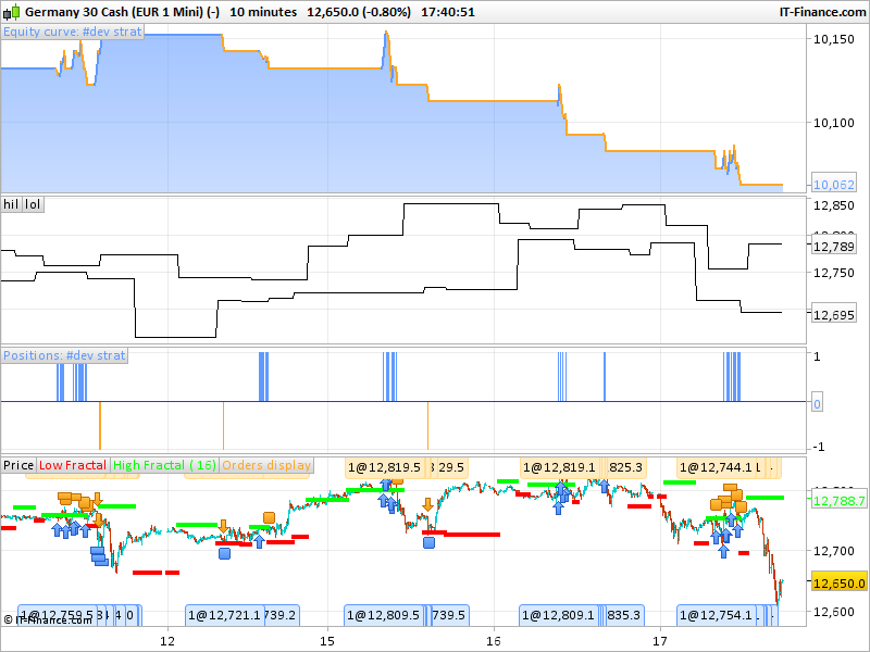 Sono riuscito a compilare una strategia per scambiare correttamente i livelli dei frattali con ordini di arresto. Di seguito troverai: