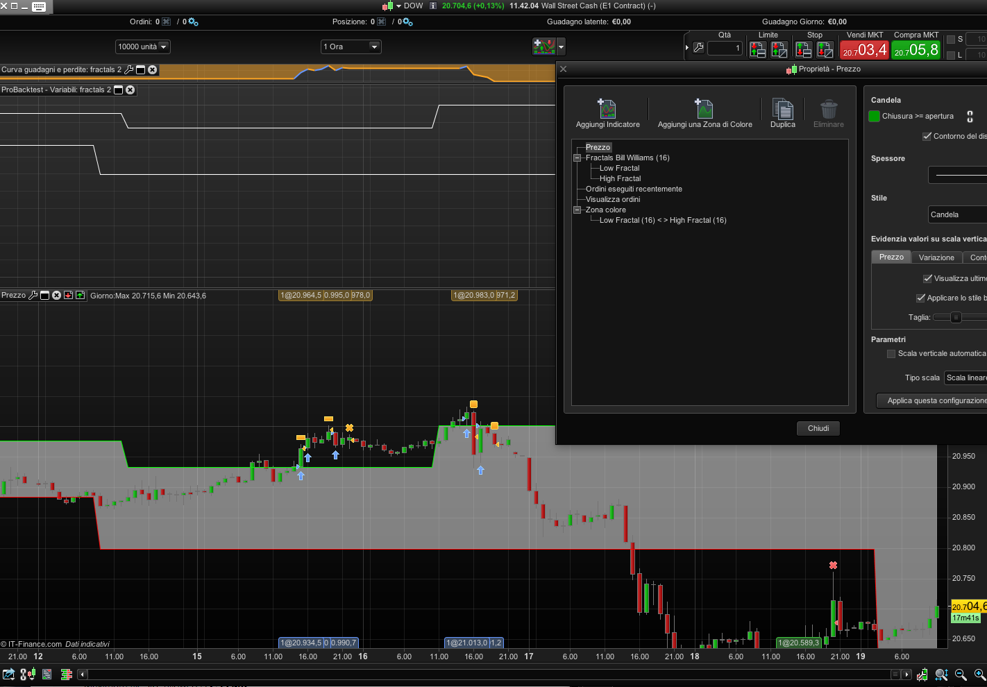 Nel codice della strategia, il periodo di frattali è impostato su 16. Confermarmi che hai impostato lo stesso per l’indicatore visualizzato sul tuo grafico. Perché il codice funziona per me. Grazie.