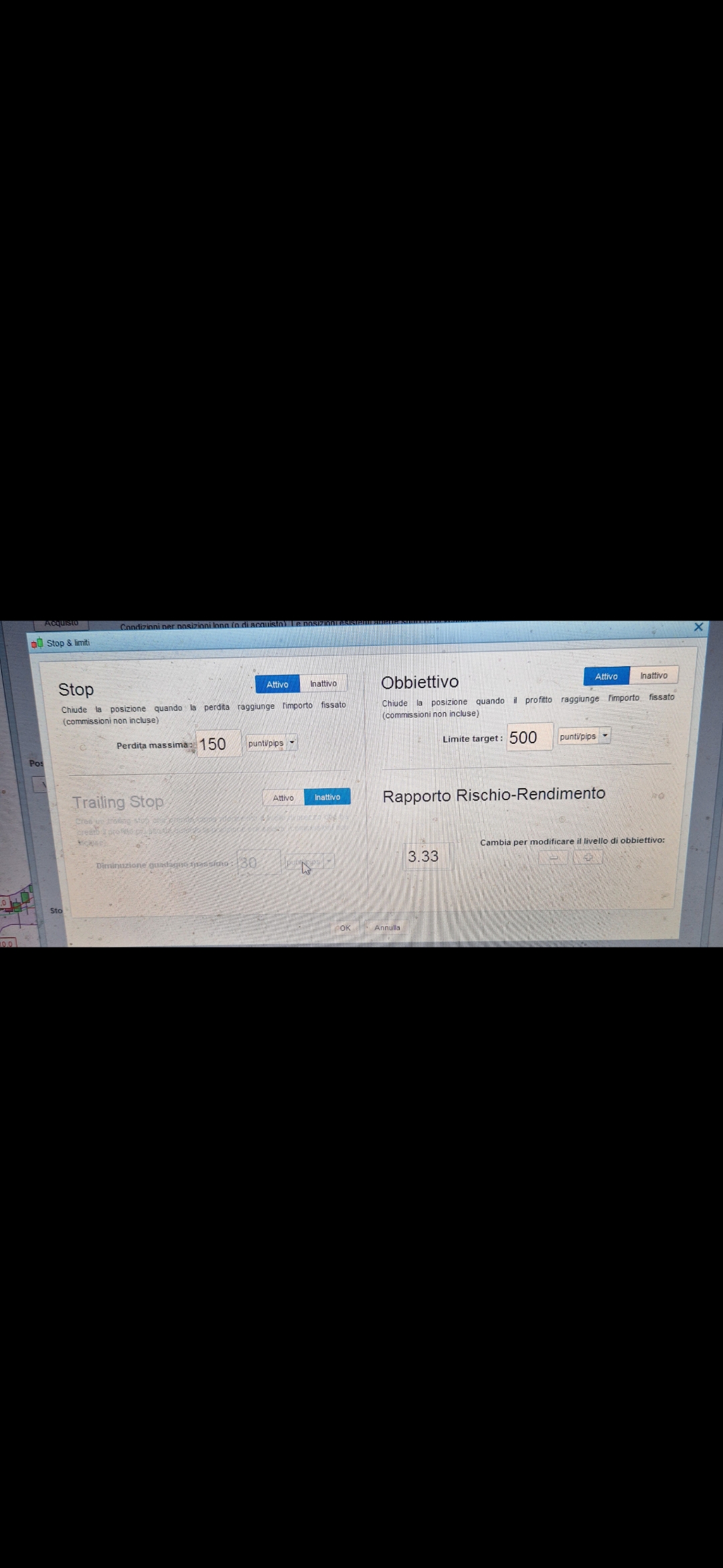 Roberto sei un grande! Ma io una capra😭 o usato il programma semplificato in proreal time, e ho messo i seguenti valori come stop, trailing stop en take profit, come posso inserirli nel programma che mi hai inviato? Ti ringrazio tanto per la disponibilità e per le informazioni, se riesco a farlo girare e va, ti faccio una statua.