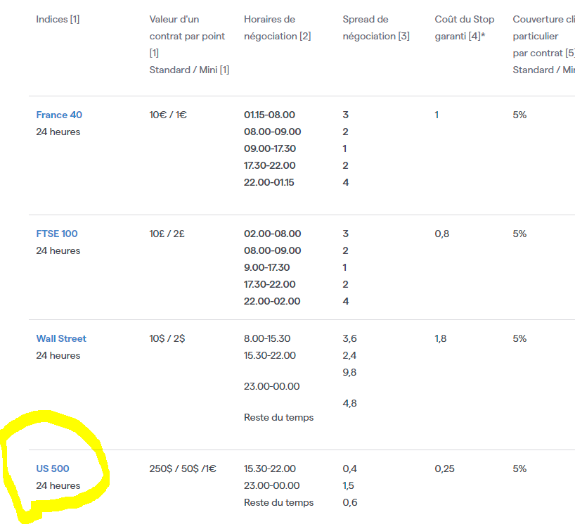 Je scalpe le SP500 (US 500 Cash) de 15h30 à 22H, je precise que mon brocker est IG.