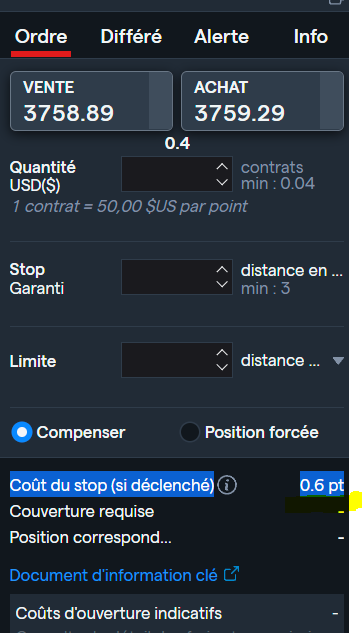 Quand je passe en backtest, à partir des infos que me donnent IG, je met le spread à 0.4 et j’hesite toujours avec la case “frais par ordre”, comment puis-je inclure les frais liés au declenchement du stop garanti ?