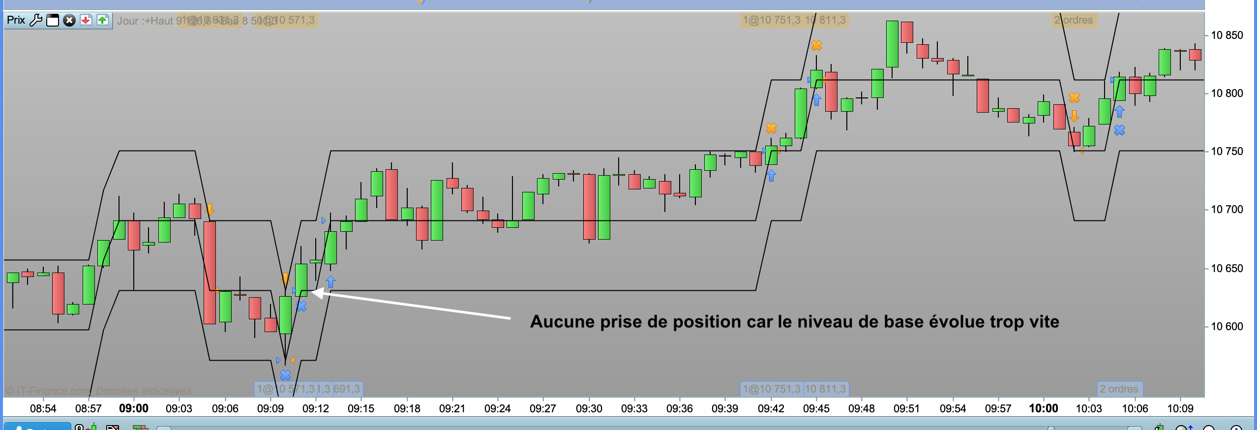 Un seul petit bémol subsiste : Aucune prise de position lors que la volatilité est trop élevée et que les niveaux font du yoyo (Cf capture d’écran ci-jointe). Pour palier à ce phénomène, il suffit simplement de diminuer le TF (le passer en seconde par exemple).