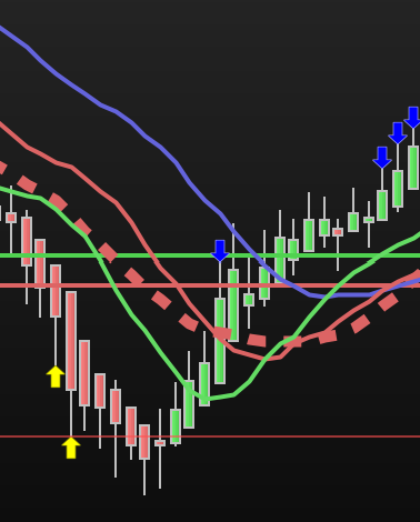 When you set the alpha values for the indicator lower than the alpha values of the candles, the indicator hides behind the candles…