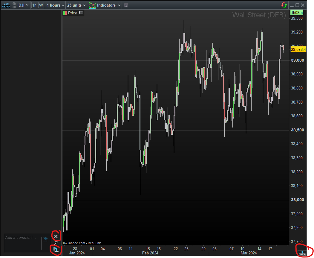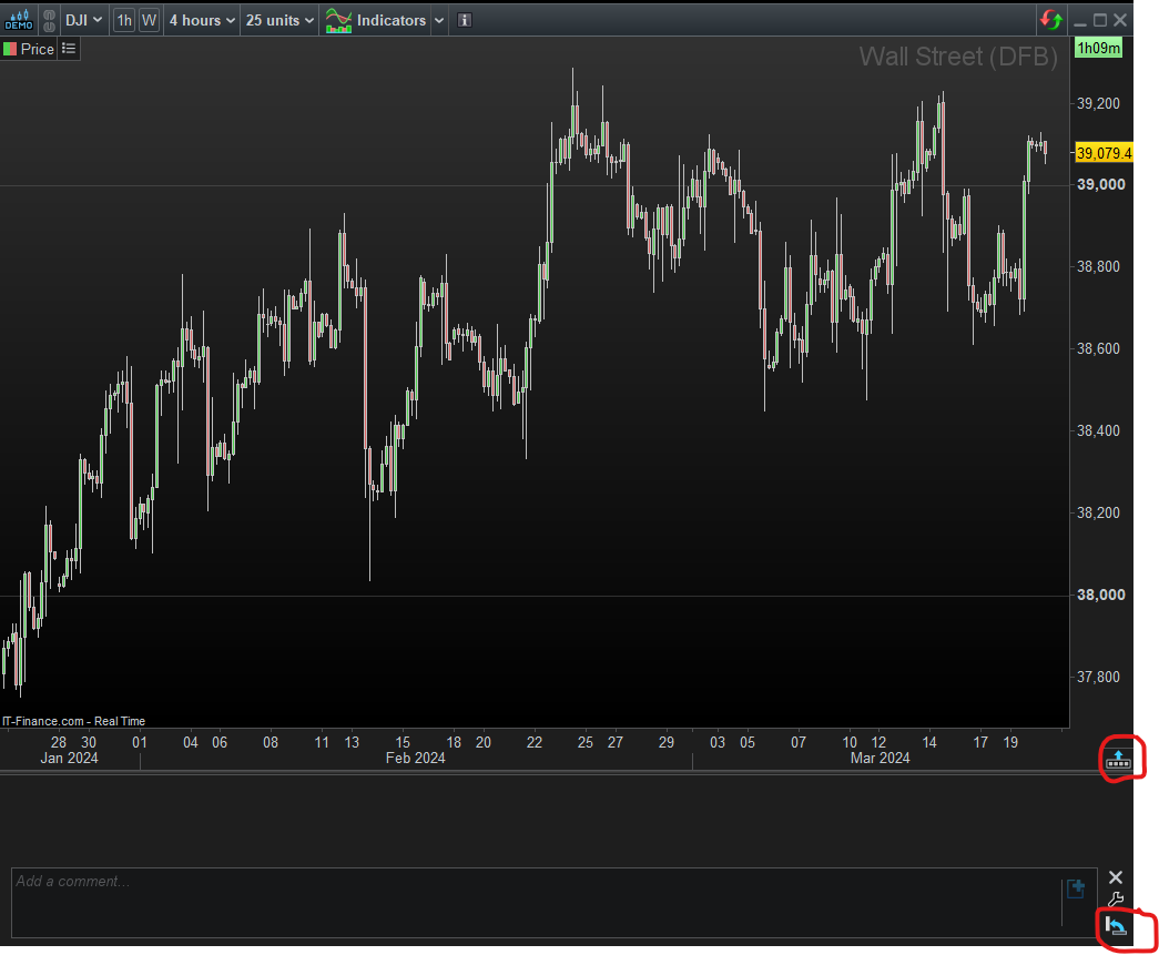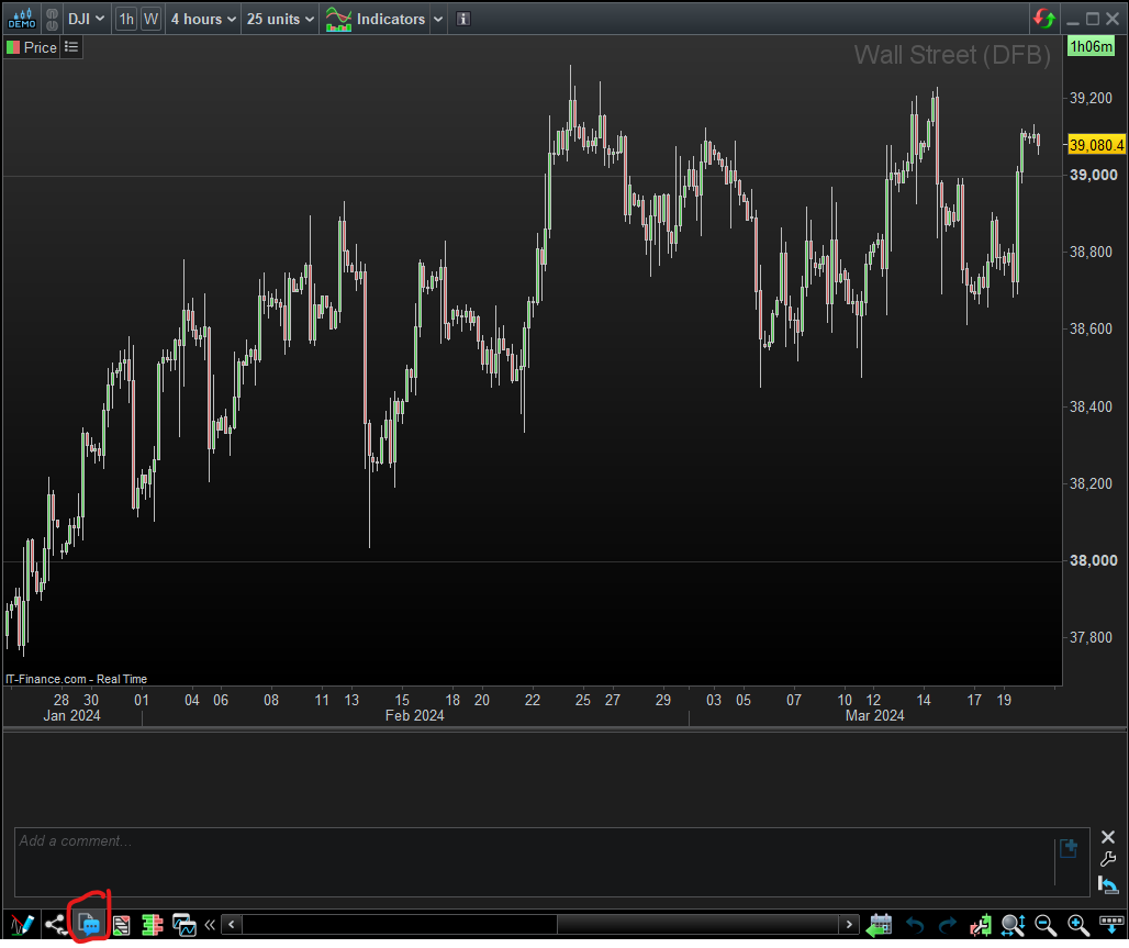 If not, to close, you need to open the bottom menu bar by clicking on the icon at the bottom right of the chart panel, not the log panel. When this appears, click on the “Trading Log” icon, on the other side of the bar, and hopefully that will close the panel.