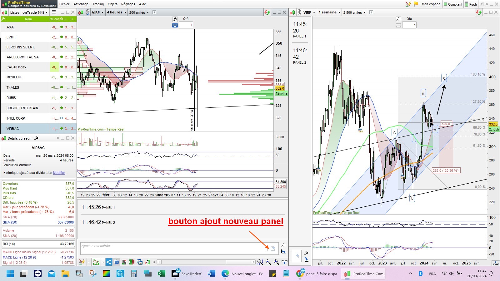 The panels that appear are similar to the ‘Trading Log’ panels, in horizontal mode.