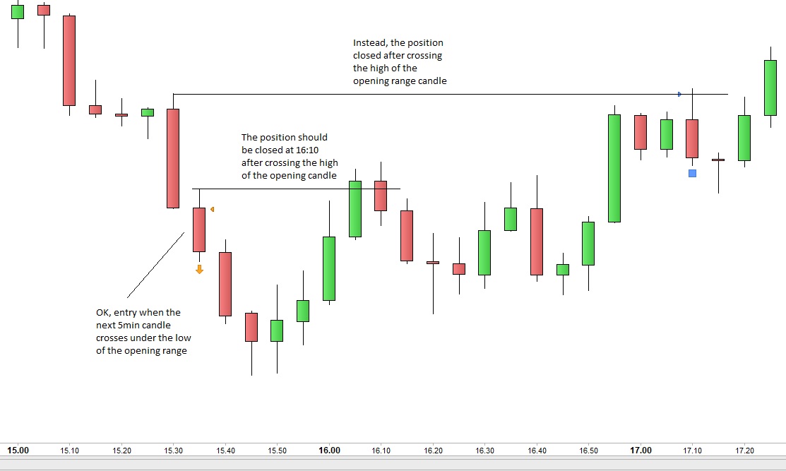 But as you can see in the image attached, the position is closed when crossing the high of the opening range candle and not when crossing the high of the candle where the position was opened