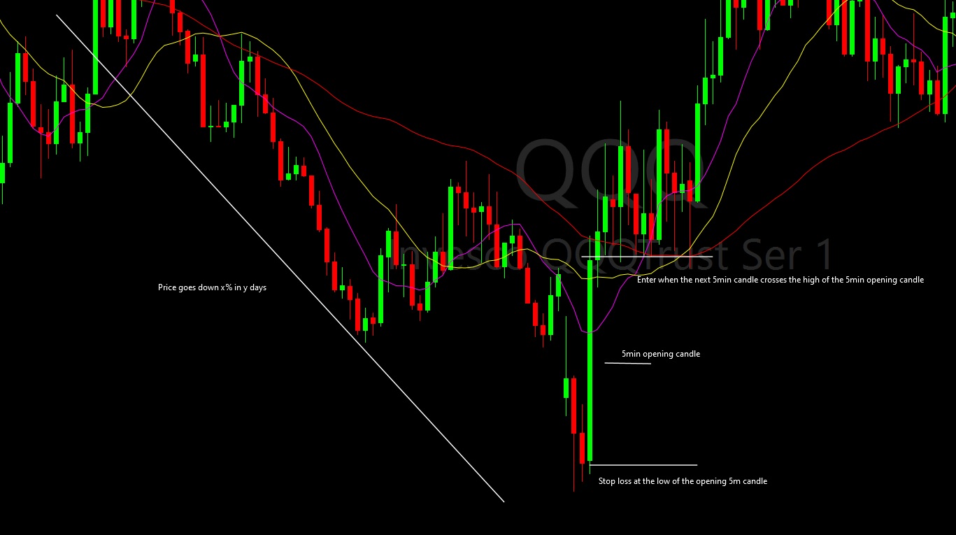 Second code: Enter short during the breakdown of the opening range low if the candle is red/Enter long during the breakout of the opening range high if the candle is green;