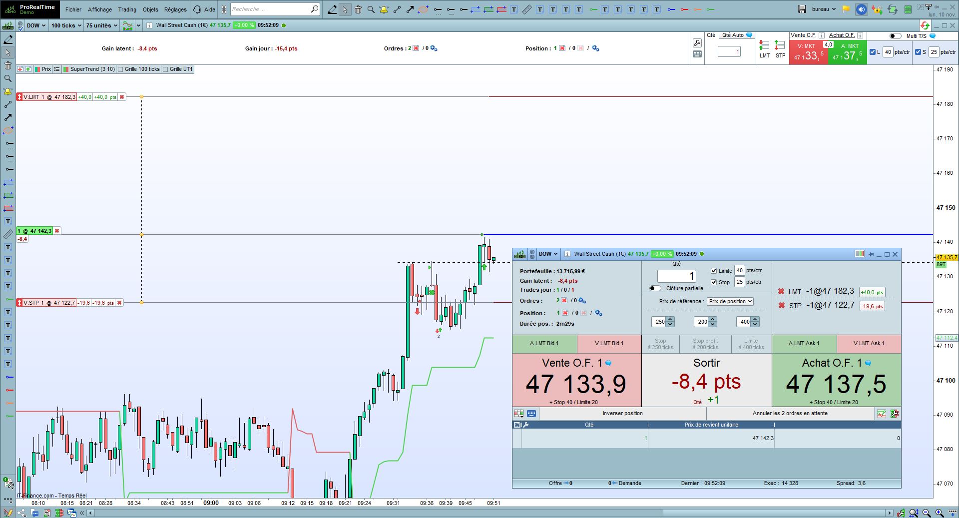 j’ai déjà activé cette option en effet ça permet de réagir assez vite mais je trade en 100 ticks à l’ouverture donc le prix évolue parfois assez rapidement et le temps de déplacer mon stop mon ordre est parfois rejeté car je dois avoir 10 points d’écart en le prix et mon SL avec mon compte IG.