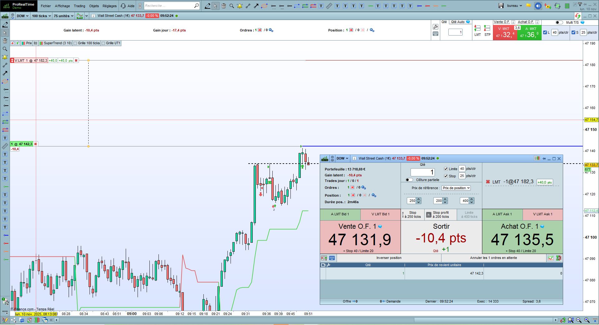 Je fais plutôt du scalping sur le Dow Jones et souvent le temps de protéger ma position (passer BE) ou de modifier mon Stop Loss en Stop Profit le prix a bougé et je réagis trop tard. Je vois 2 options qui pourrait m’aider mais je ne trouve pas comment les paramétrer :