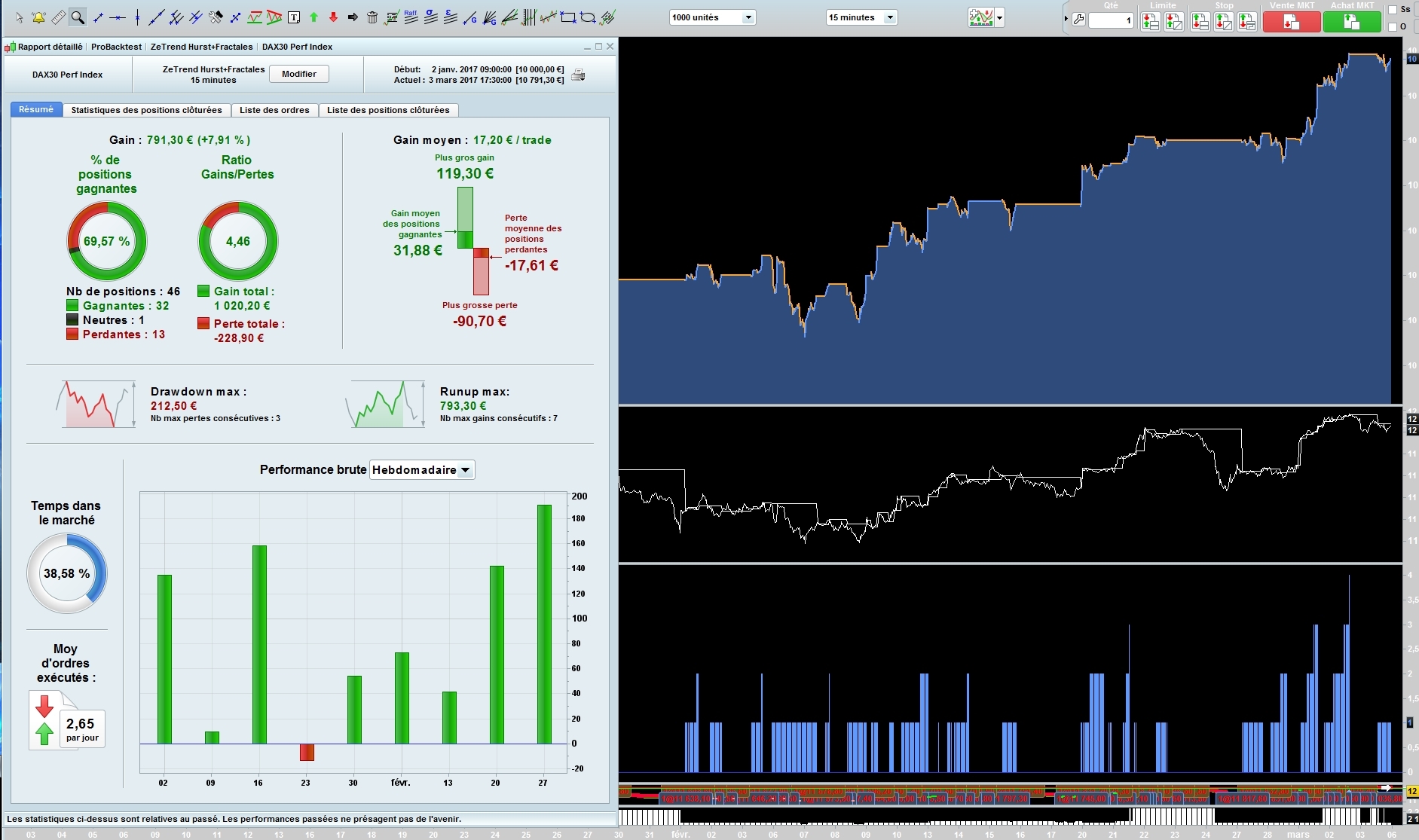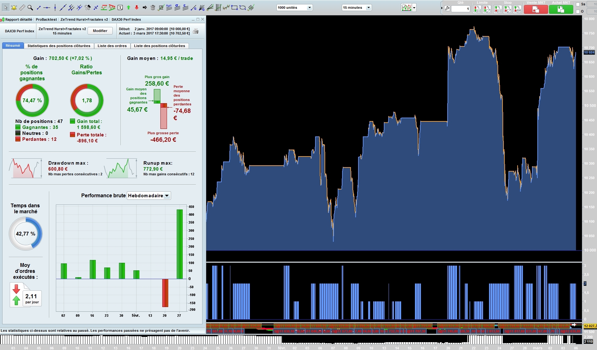 I code a simple strategy DAX ut15 Spread=1 and test it