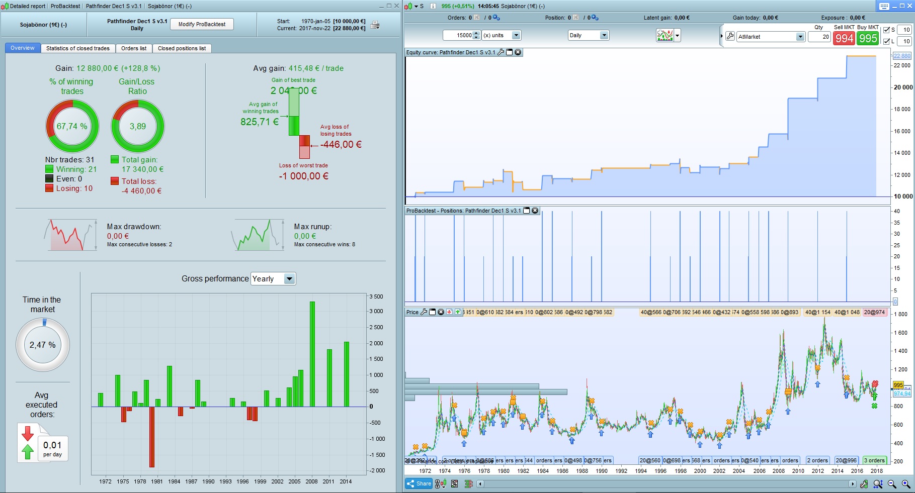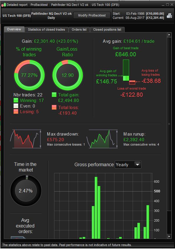 Edit: Just realised that we get the same results if I add the sell command “IF longonmarket and (s1 AND f1)… etc”