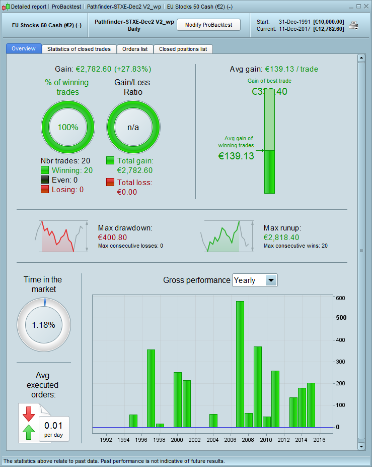 Do not know what is wrong, but the trades didn’t follow the backtest. Anyway, a nice profit of € 228.