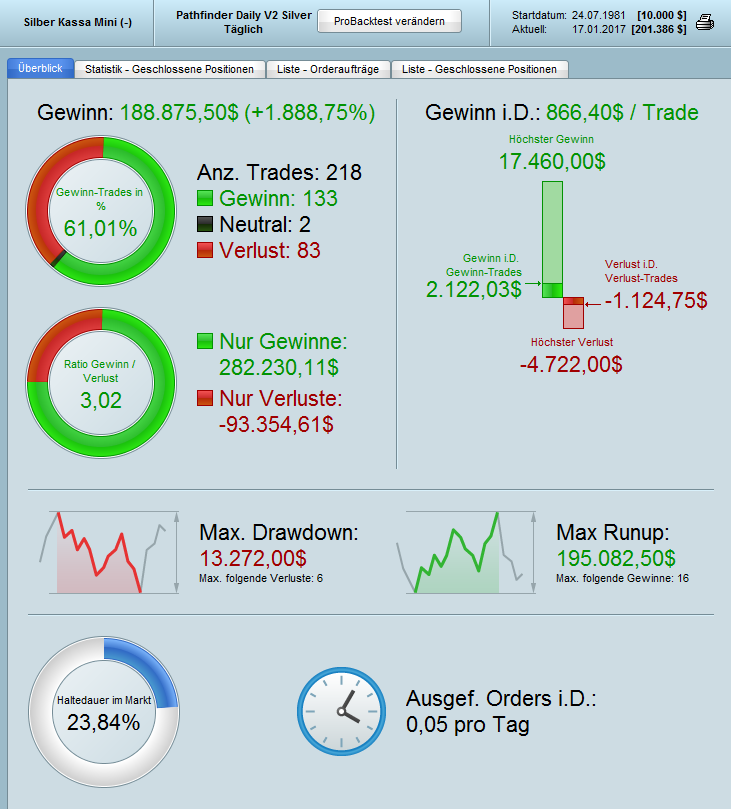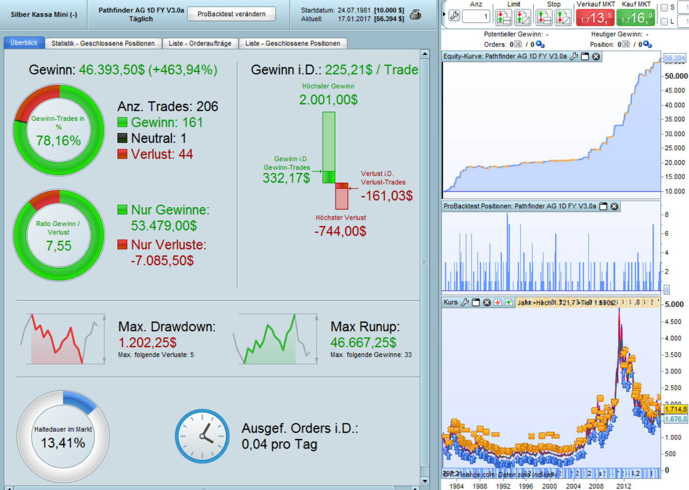 It delivers a better result than the “Pathfinder Daily V2 Silver” program I had before, but there is still room for improvement (e.g. low % Winning Trades).