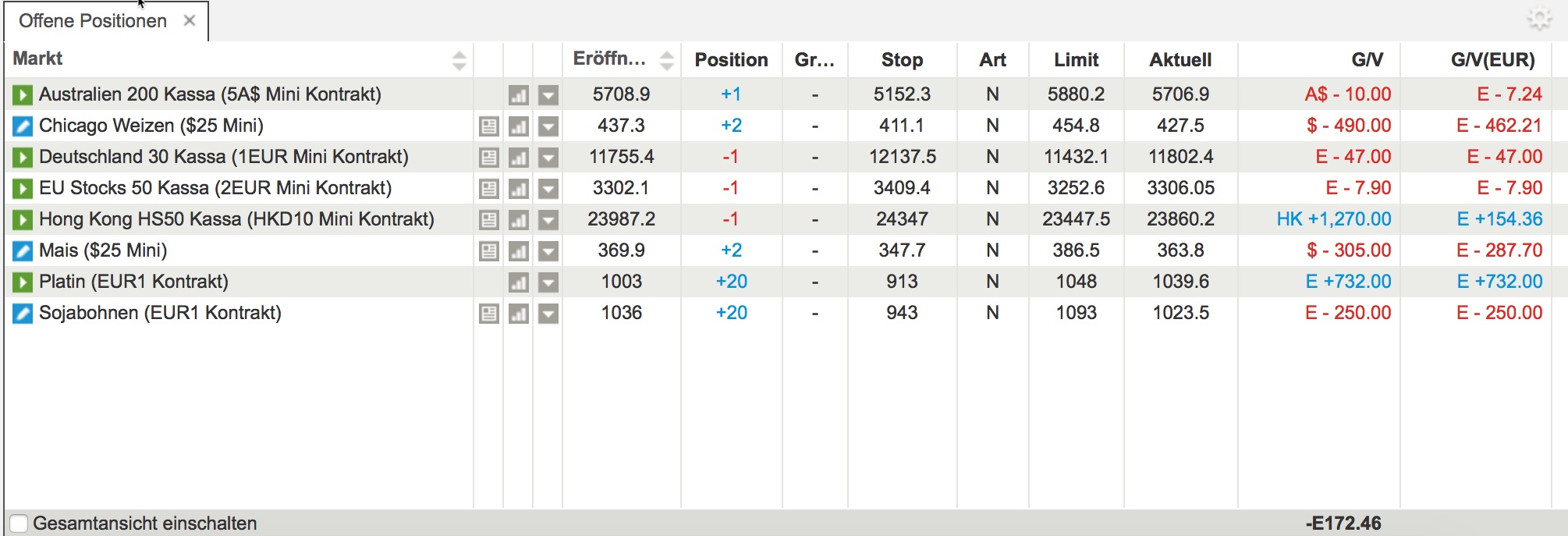 current Pathfinder swing portfolio, mixed results, grains under water and platinum with a nice profit