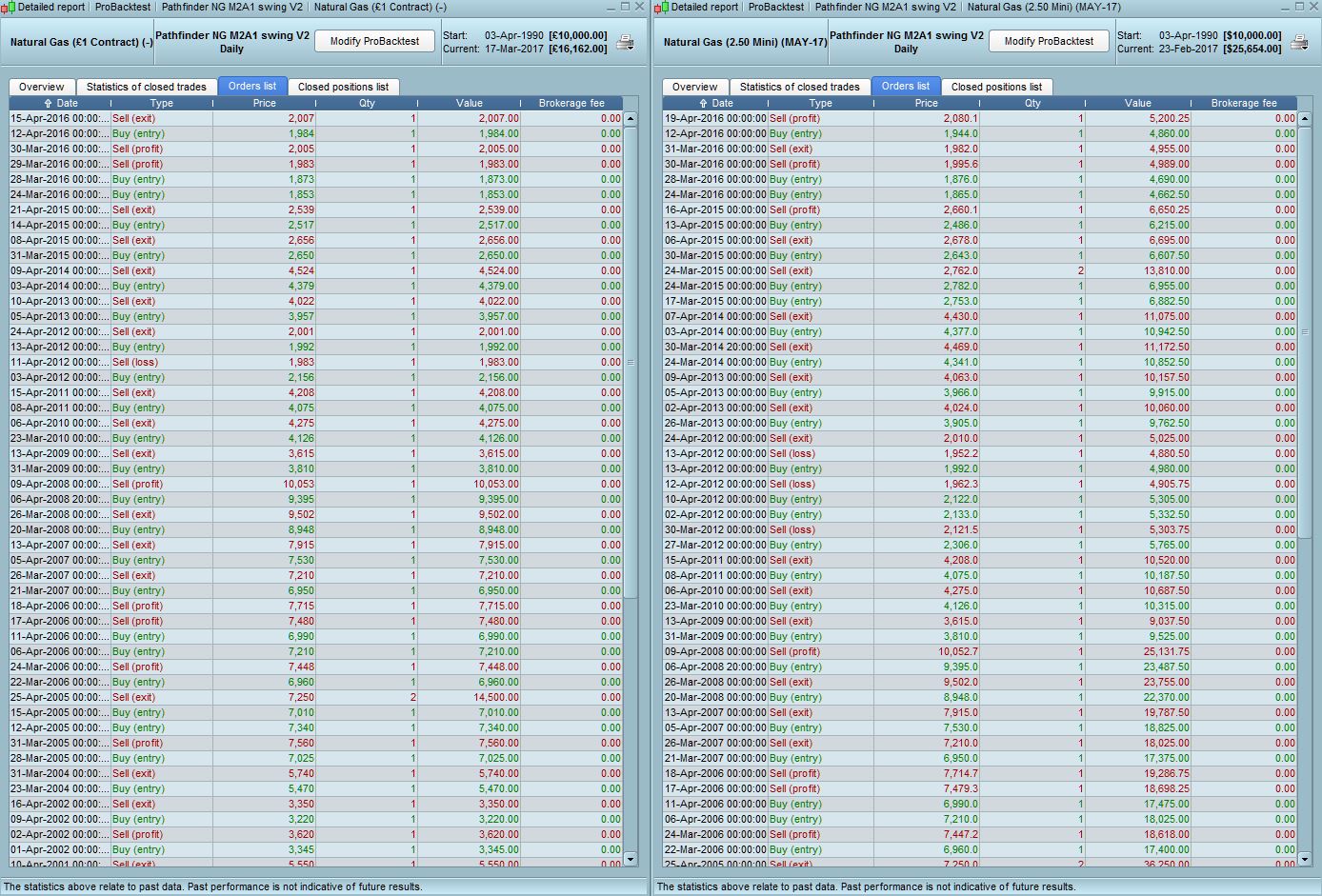 Since NG minimum amount af contracts is 2,5 it doesn’t work for the EUR1 unless you change the code to 2.5. But than the results are not ok.
